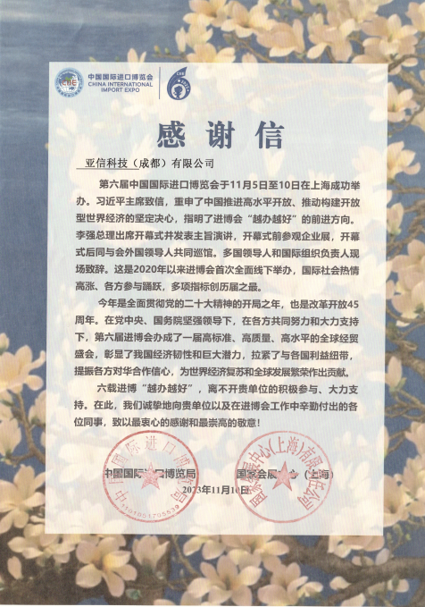 近日,由商务部和上海市人民政府主办的第六届中国国际进口博览会在上海成功举办。作为拥有丰富的大型国家重大活动安全保障经验的安全企业,亚信安全派出现场专家团队,在大会前期迅速开展攻防演练,并在大会期间提供7*24小时的安全保障服务,圆满完成了大会交付的各项任务,得到中国国际进口博览局、国家会展中心(上海)的高度肯定和褒奖。