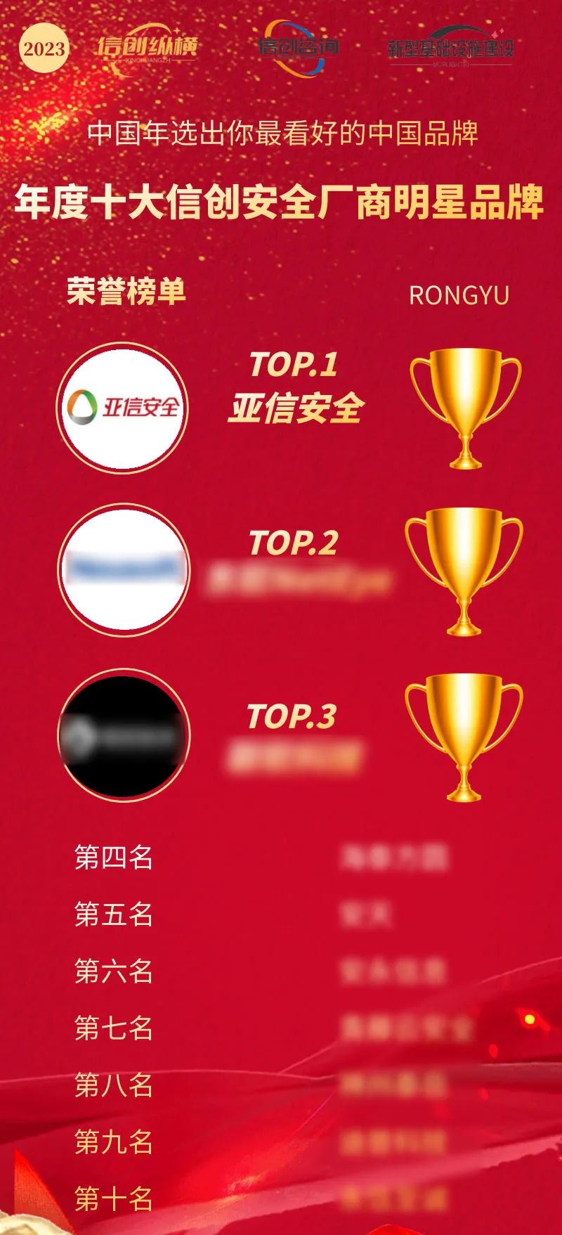 近日,首届“中国年选出你最看好的中国品牌:年度十大信创品牌”总榜单重磅发布,亚信安全凭借在信创领域的突出技术实力及优势,以及持续推动信创产业安全发展的贡献,入围“年度十大信创明星品牌”,并位居“信创安全类”子榜单榜首!