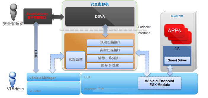 通过部署虚拟化底层的无代理防护体系,亚信安全对虚拟环境提供全新的信息安全防护方案——信舱 云主机安全DeepSecurity,通过病毒防护、访问控制、入侵检测/入侵防护、虚拟补丁、主机完整性监控、日志审计等功能实现虚拟主机和虚拟系统的全面防护,并满足信息系统合规性审计要求。